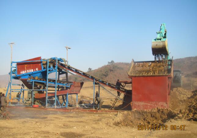 選礦機干枯河道河床選金設備產量在國內外的很多沙金礦區中多是遠古時期地殼運動所留下的干枯的河道,河床,往往沙金的含量是比較高的,這都是有根據的.在干枯河道中選金,往往含廢料比較多,像是費石子,有的還有樹根的其他雜物含量也是比較多.這樣在選礦的時候設備一定要選擇好.可以采用挖掘機或鏟車上料,如果還有水的話也可以采用抽沙泵上料進入沙金提取設備. 挖掘機或鏟車上料至選金設備料斗,振動料斗振動均勻下料至滾筒洗礦分離篩,進行篩分,將礦中所含有的石子,或樹根等其他廢料篩分出去,含金的礦料經過滾筒洗礦分離篩的篩分沖洗進入選金槽或者離心機或魯晟機械所研制的新型跳汰機進行選金,金子和重沙留在里面,沙子就排走了.魯晟機械制造的河道河床選金設備出口了多個地區,有移動式的有振動式的多種,受到礦老板們的一致好評.